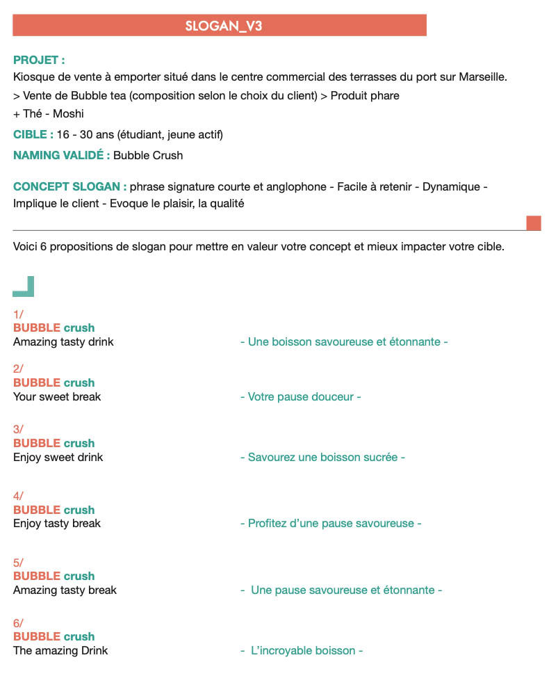 Donner une dynamique réelle à ce projet. Attirer l’œil et inciter à gouter le produit phare. La marque est destinée à un public jeune (15-30 ans) pour une pause gourmande.