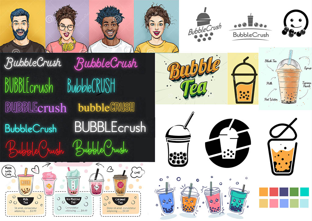 Concevoir un nom commercial et une identité visuelle pour une marque dont le produit phare est le bubble tea.